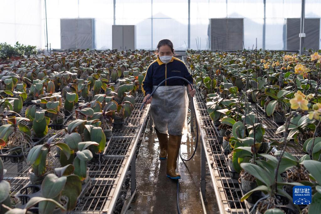 1月9日,工作人員在北大荒建三江國家農業(yè)科技園區內給植物澆水。