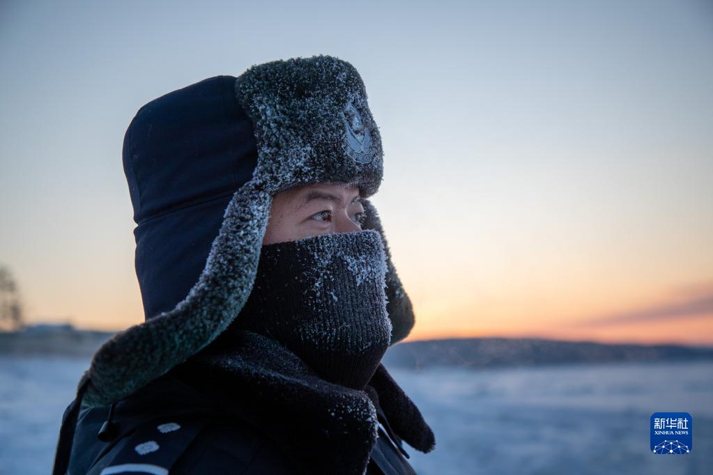 1月8日,史先強在洛古河村旁封凍的黑龍江江面上進(jìn)行邊境巡邏。