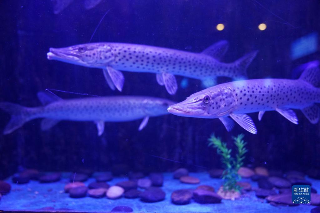 這是撫遠市魚(yú)博館中展示的黑斑狗魚(yú)(1月9日攝)。