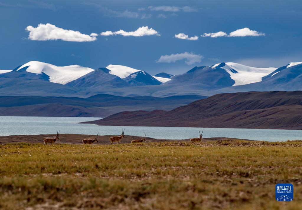 這是2022年7月17日在西藏那曲市雙湖縣境內拍攝的藏羚羊。雙湖縣平均海拔5000多米,這里有星羅棋布的湖泊、空曠無(wú)邊的草原和皚皚雪山冰川,是眾多野生動(dòng)植物的樂(lè )園。