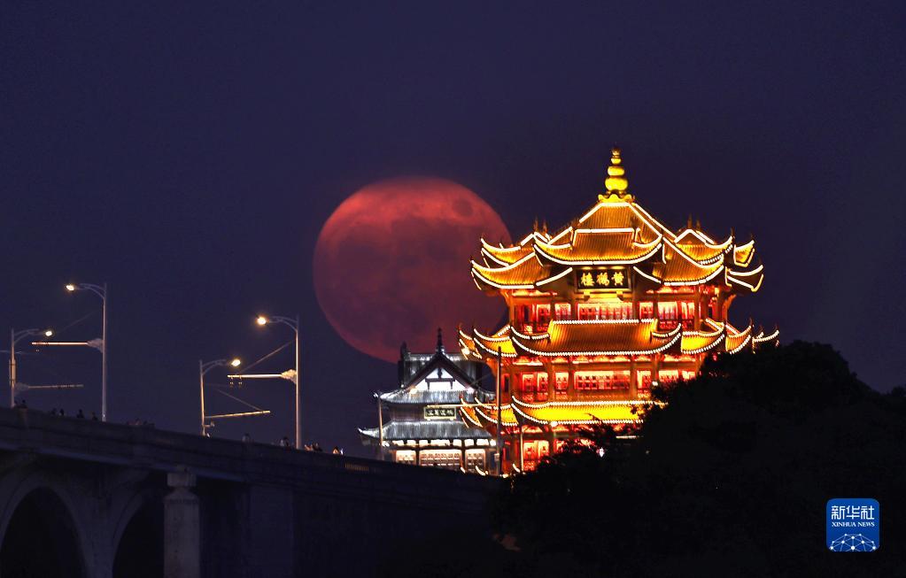 2022年9月10日,農歷八月十五中秋節,一輪圓月從湖北武漢黃鶴樓后升起。