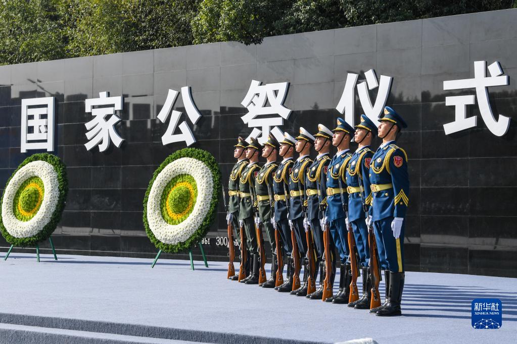 當日是第九個(gè)南京大屠殺死難者國家公祭日,南京大屠殺死難者國家公祭儀式在侵華日軍南京大屠殺遇難同胞紀念館舉行。