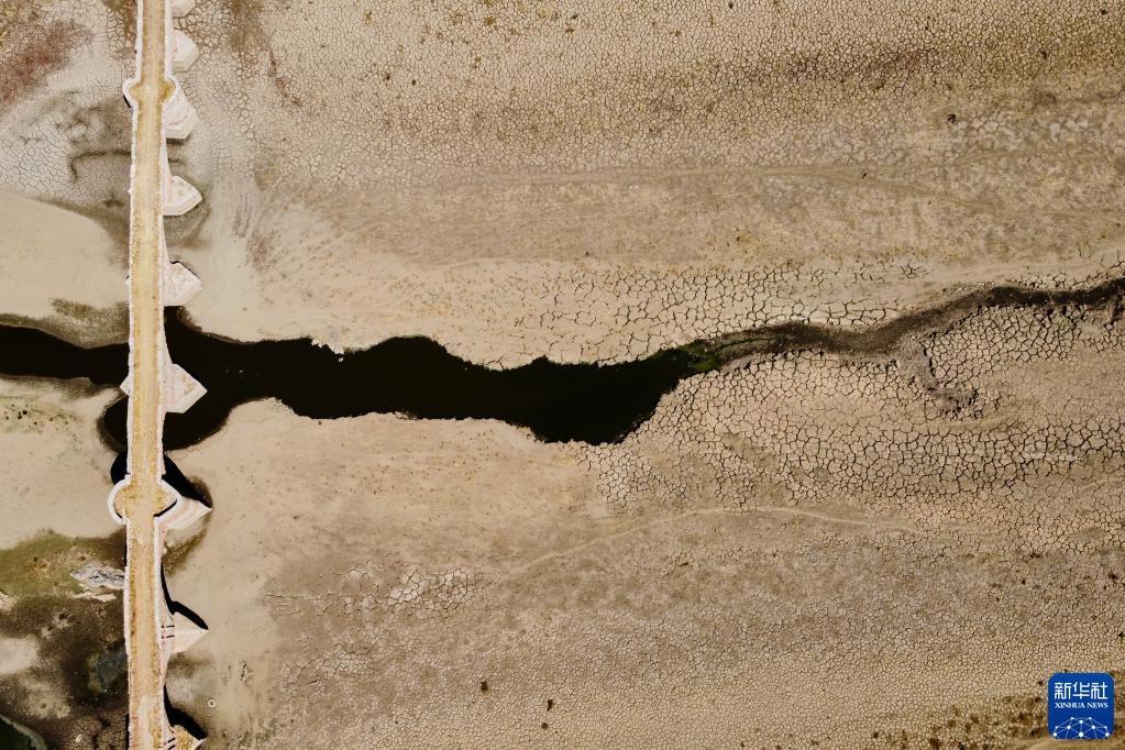 這是2022年8月15日用無(wú)人機拍攝的干涸的西班牙錫哈拉水庫,上世紀50年代因水庫落成而被淹沒(méi)的梅斯塔古橋重見(jiàn)天日。西班牙2022年夏天經(jīng)歷多輪熱浪,全國水庫蓄水量不足40%。