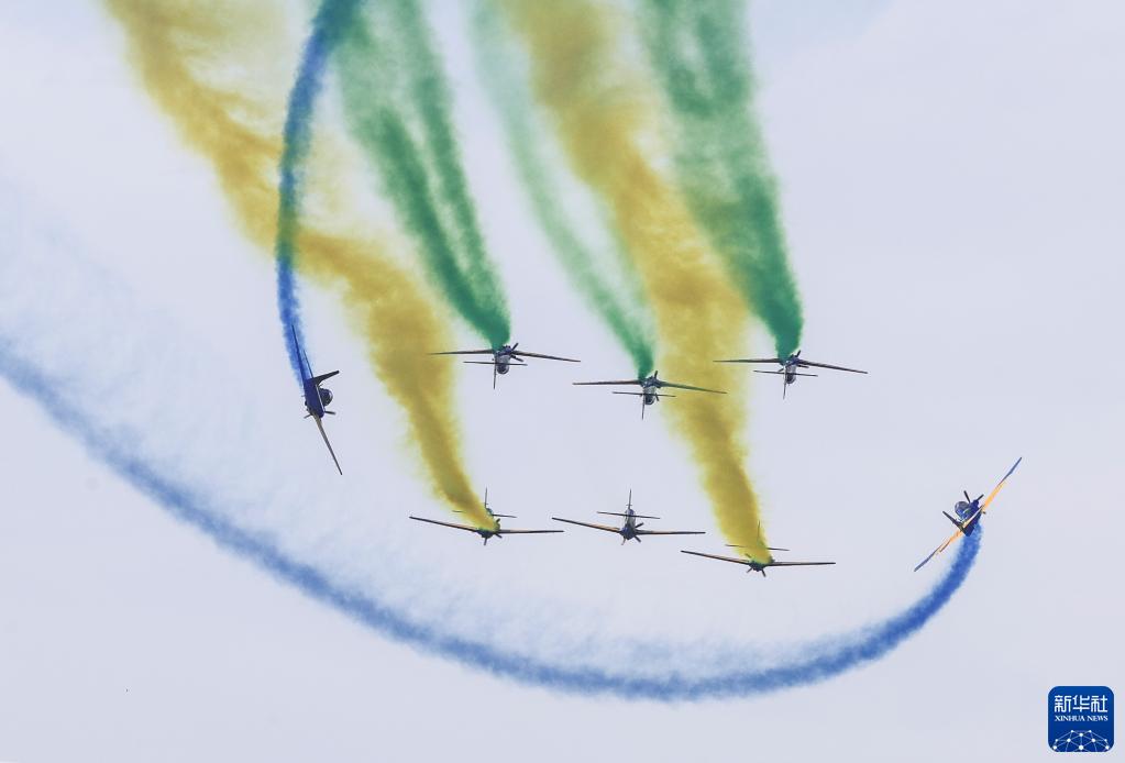 2022年9月7日,飛機在巴西里約熱內盧科帕卡巴納海灘上空進(jìn)行飛行表演,慶祝巴西獨立200周年。