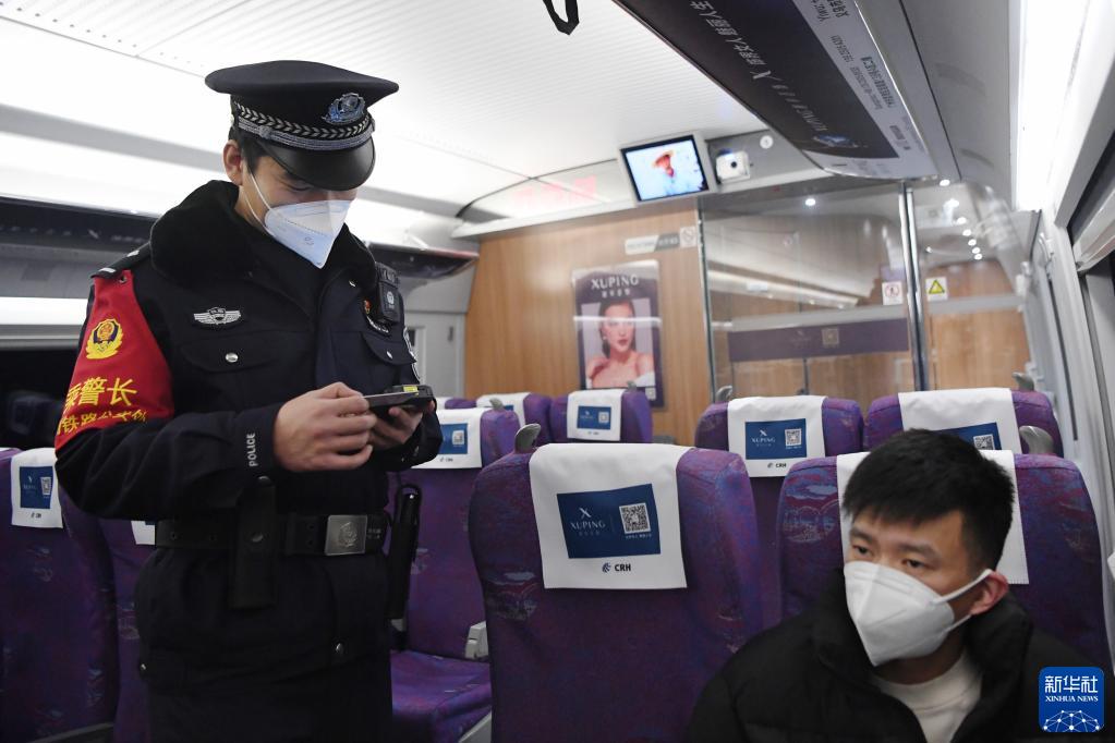 1月9日,白旭偉在G2686次動(dòng)車(chē)組列車(chē)上核驗旅客身份信息。