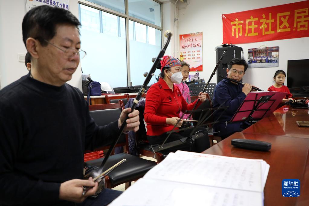 1月9日,在石家莊市市莊社區居委會(huì )群眾活動(dòng)中心,音樂(lè )家張勇(右二)在指導文藝愛(ài)好者練習民樂(lè )演奏。