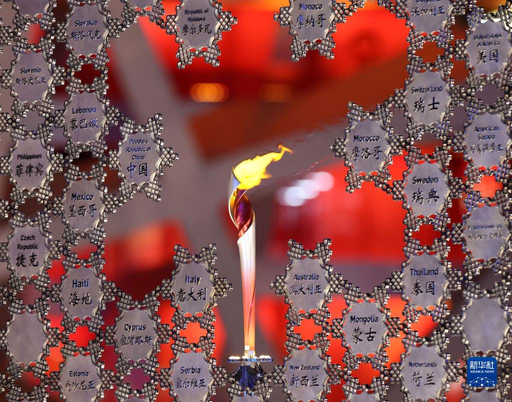 這是位于國家體育場(chǎng)外的北京冬奧會(huì )火炬臺。