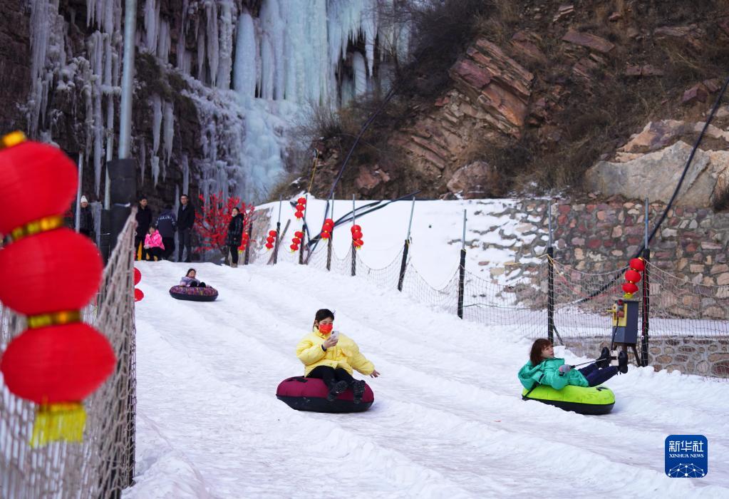 時(shí)值臘月,河北省邢臺市西部太行山區出現冰瀑景觀(guān)。當地景區利用自然資源,推出冰瀑游、冰雪樂(lè )園等冬季旅游項目,吸引游客前來(lái)體驗冰雪樂(lè )趣。新華社發(fā)(田曉麗 攝)