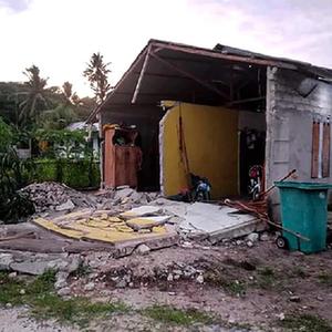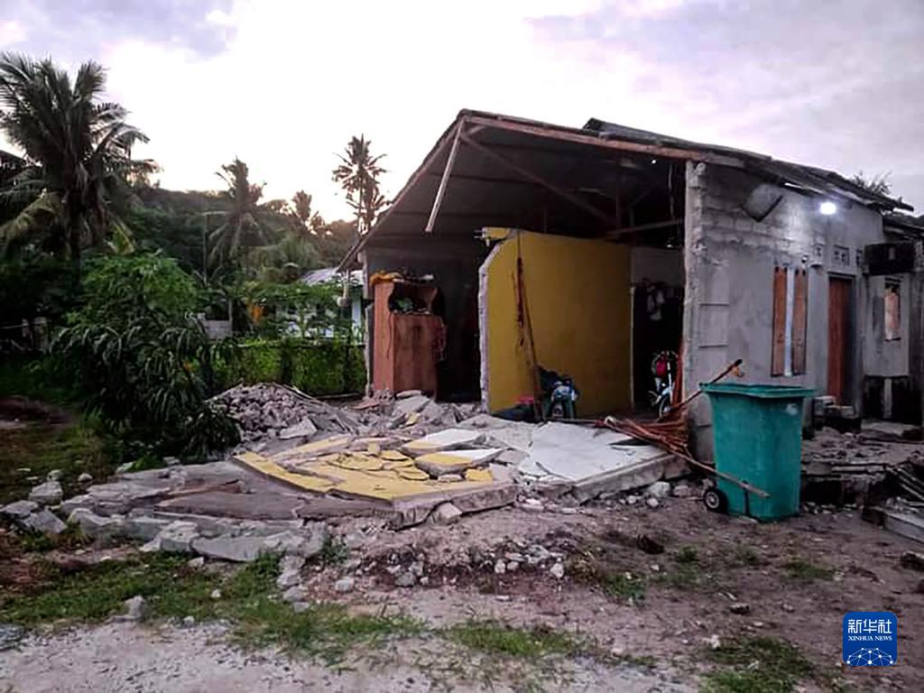 這是1月10日在印度尼西亞馬魯古省拍攝的在地震中受損的房屋。