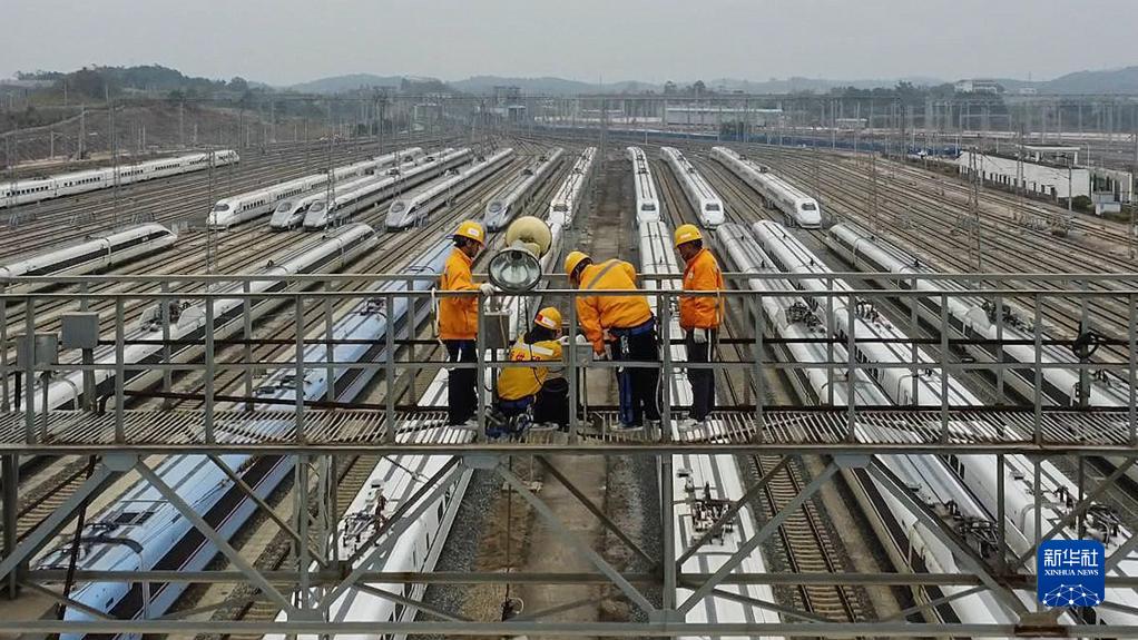 春運期間,中國鐵路南寧局集團有限公司南寧動(dòng)車(chē)所的接觸網(wǎng)工們要定期登上24米高、120米長(cháng)的燈橋,對列車(chē)運行徑路的燈塔、燈橋、電力鋼柱開(kāi)展專(zhuān)項排查檢修,確保亮燈率在80%以上,保障運行高峰期列車(chē)平安出行。