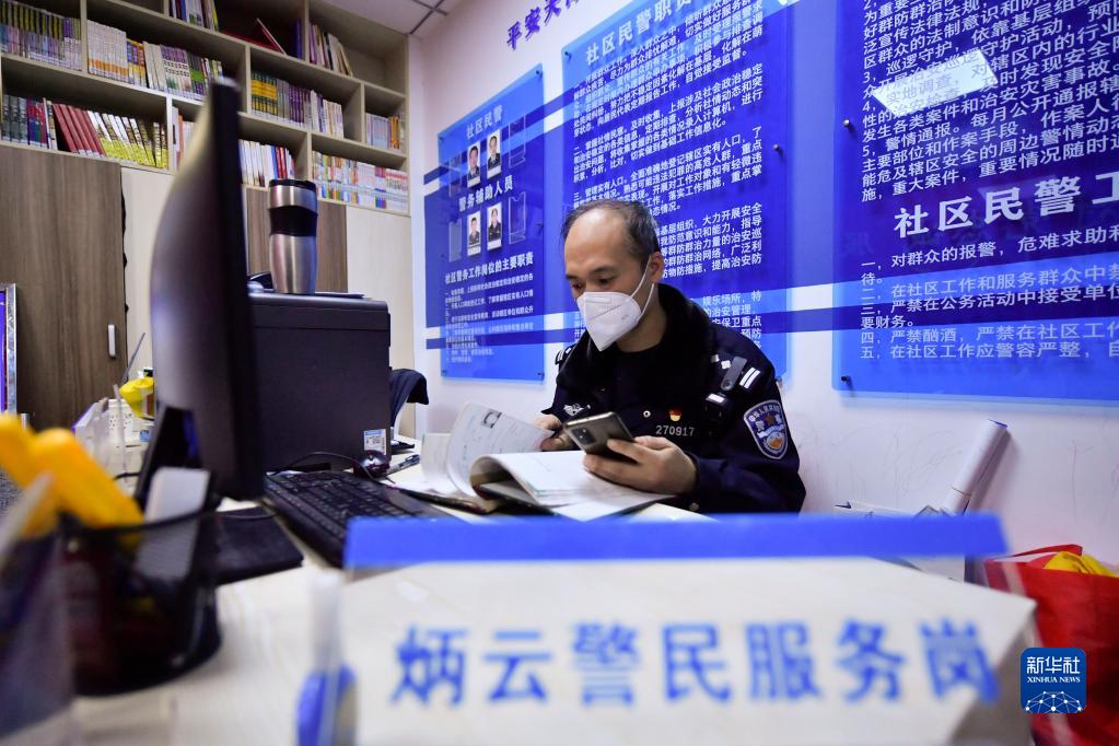 1月7日,在富方園社區警務(wù)室,陳炳云更新轄區居民戶(hù)籍信息。