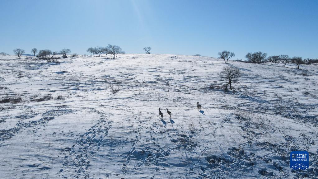 狍子在古日格斯臺國家級自然保護區活動(dòng)(1月9日攝,無(wú)人機照片)。