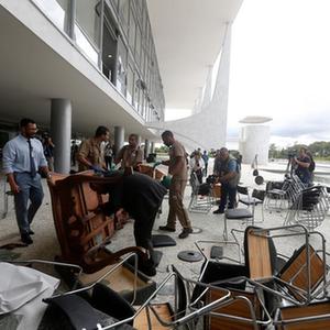 1月9日,在巴西首都巴西利亞,工作人員清理總統府普拉納爾托宮遭到破壞的家具。