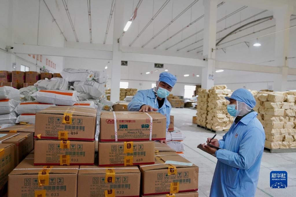 1月10日,會(huì )昌縣五豐食品有限公司的工作人員在車(chē)間登記米粉的入庫數量。