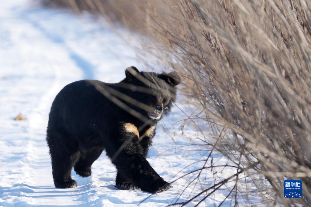 1月10日,黑熊在“探秘野熊園”內活動(dòng)。
