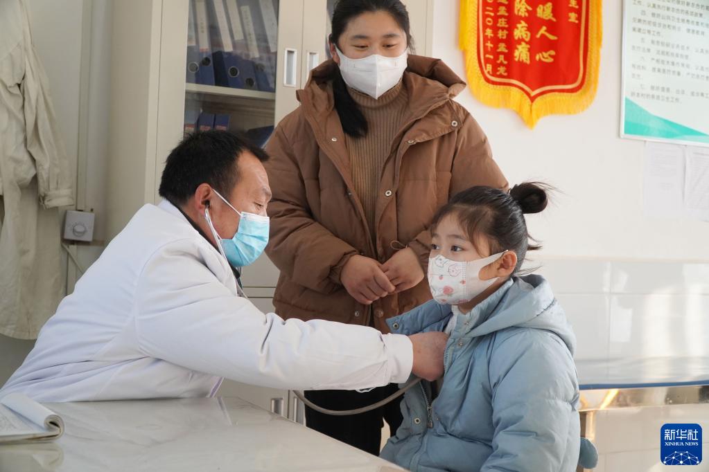 1月10日,在山東省鄆城縣郭屯鎮邵集村衛生室,全科醫生李仁幫為患者看病。