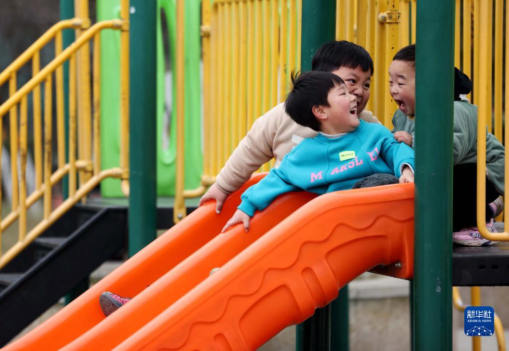 1月10日,孩子們在合肥市瑤海區一處街頭游園內嬉戲。