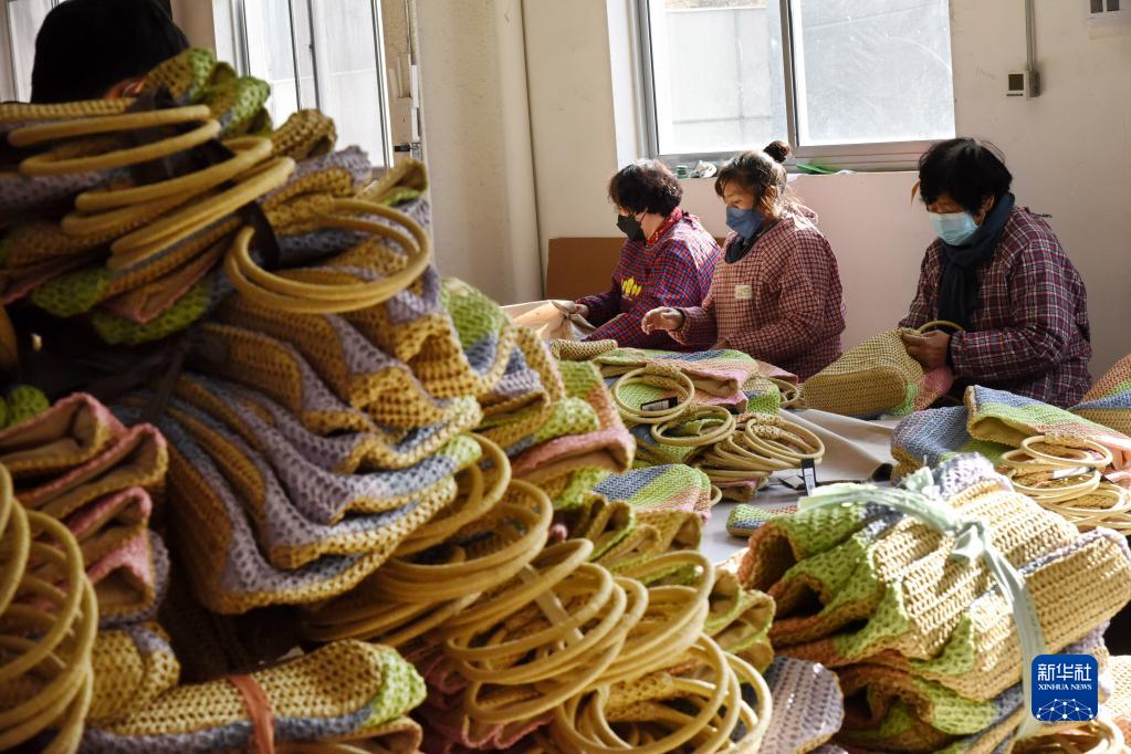 1月10日,平度市新河鎮瑞龍工藝品廠(chǎng)職工在加工草編。