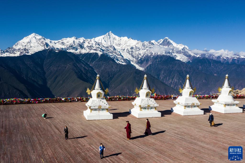 1月11日拍攝的梅里雪山一景(無(wú)人機照片)。