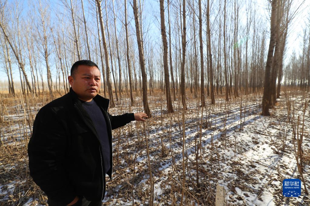 1月9日,在新民市市郊,農民將刺嫩芽樹(shù)栽種在林下。