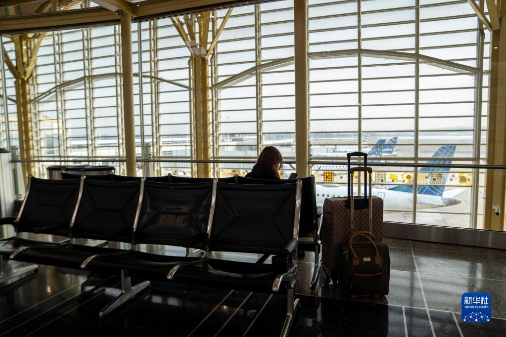 1月11日,一名旅客在美國弗吉尼亞州阿靈頓的里根國家機場(chǎng)等待。新華社記者 劉杰 攝