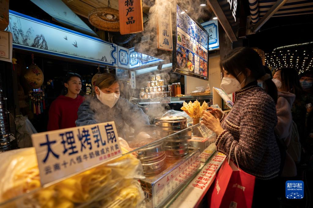 近期,位于云南省昆明市中心的“網(wǎng)紅夜市”南強街巷夜經(jīng)濟升溫,特色小吃、主題表演、精品店鋪等吸引眾多游客。昆明老街——南強街區2022年入選文化和旅游部公布的第二批國家級夜間文化和旅游消費集聚區名單,成為游客體驗春城飲食文化和夜生活的首選之一。