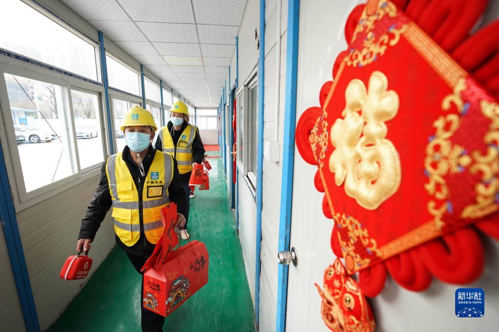 當日,中建四局江蘇建設投資有限公司為在南京務(wù)工的農民工發(fā)放春聯(lián)、年貨禮包和健康包等,送上新春祝福。
