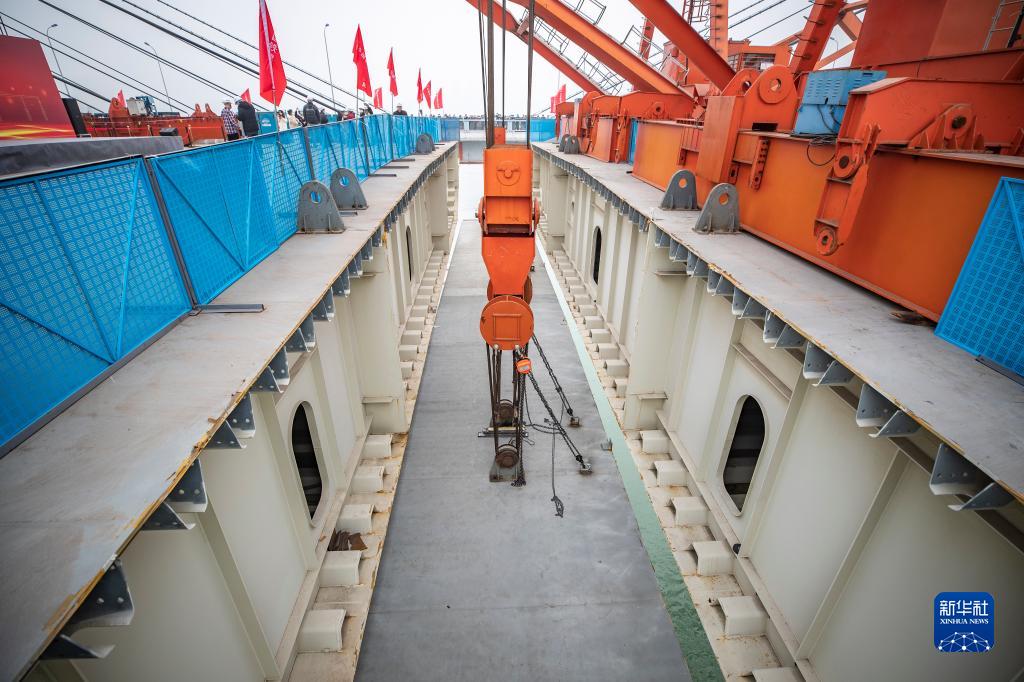 1月12日,李家沱長(cháng)江復線(xiàn)橋進(jìn)行最后一節鋼箱梁吊裝作業(yè)。