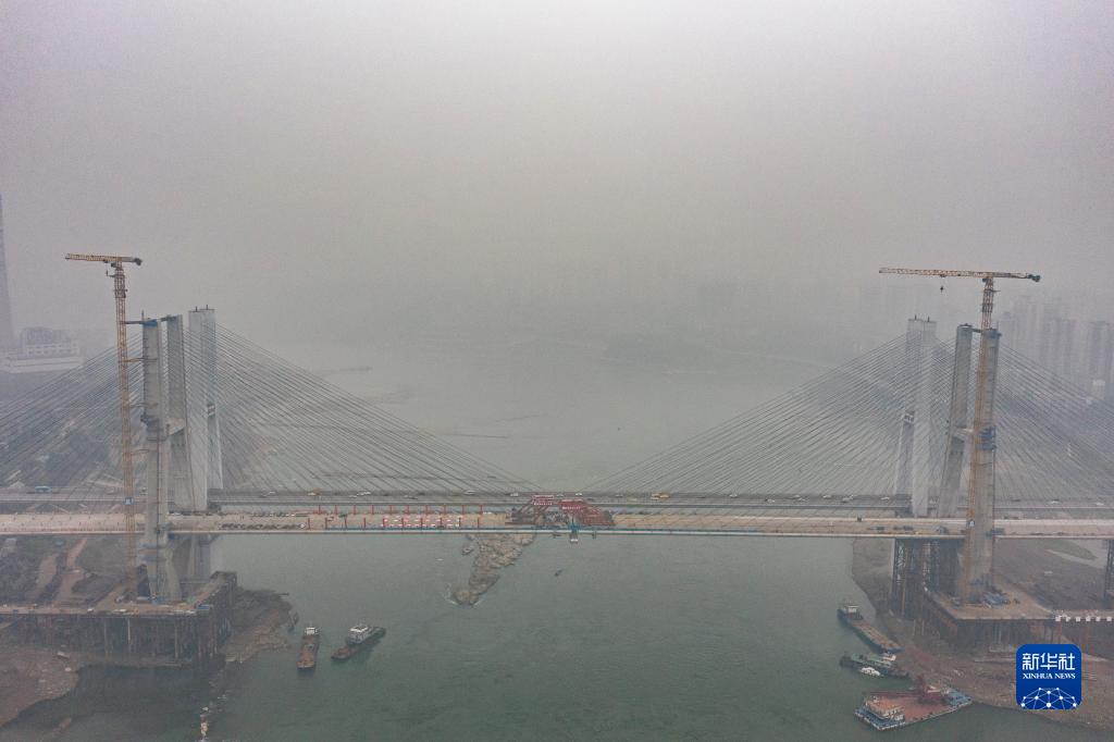 這是李家沱長(cháng)江復線(xiàn)橋合龍施工作業(yè)現場(chǎng)(1月12日攝,無(wú)人機照片)。