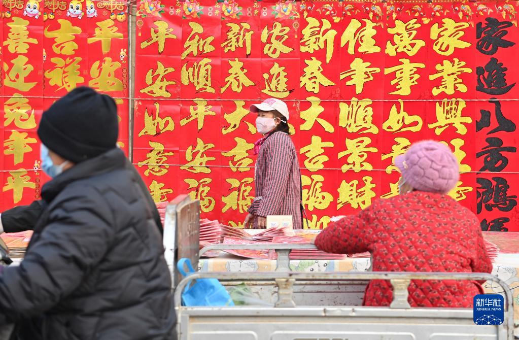1月12日,人們在金井鄉的年集上選購春聯(lián)。
