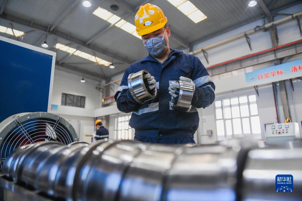 1月12日,工作人員在包頭車(chē)輛段檢修車(chē)間輪軸檢修間作業(yè)。