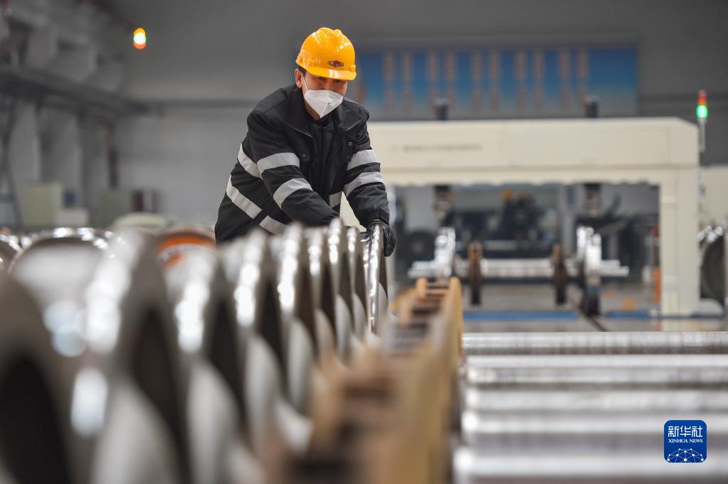 1月12日,工作人員在包頭車(chē)輛段檢修車(chē)間輪軸檢修間作業(yè)。