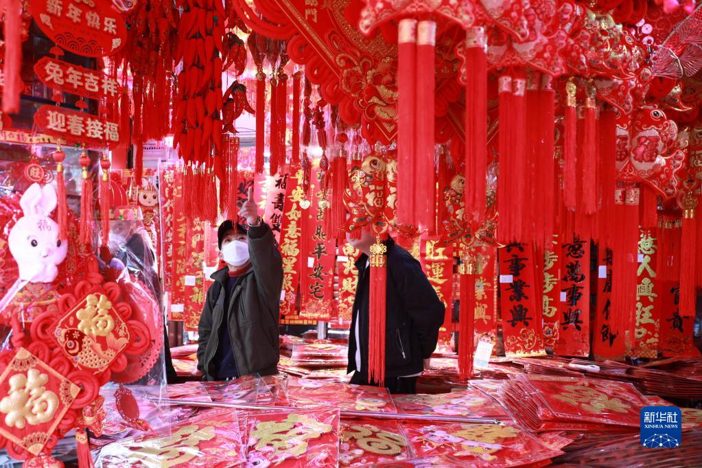 臨近春節,各地年貨市場(chǎng)熱熱鬧鬧,人們忙著(zhù)選購新春飾品。