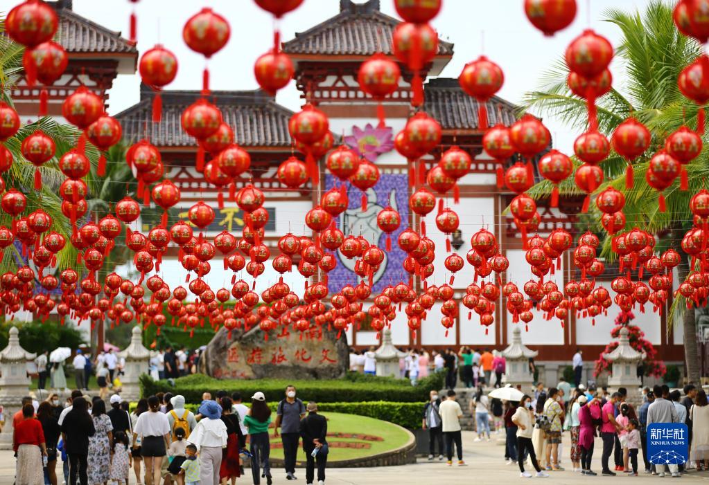1月12日,游客在海南省三亞南山文化旅游區游覽。