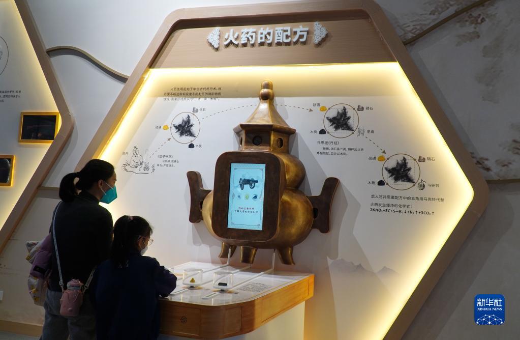 1月13日,在山東省科技館新館,參觀(guān)者在了解與火藥有關(guān)的知識。