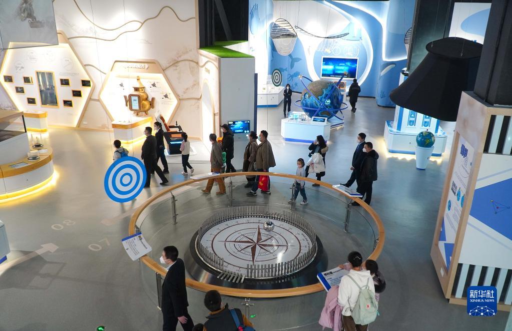 1月13日,參觀(guān)者在山東省科技館新館內參觀(guān)。