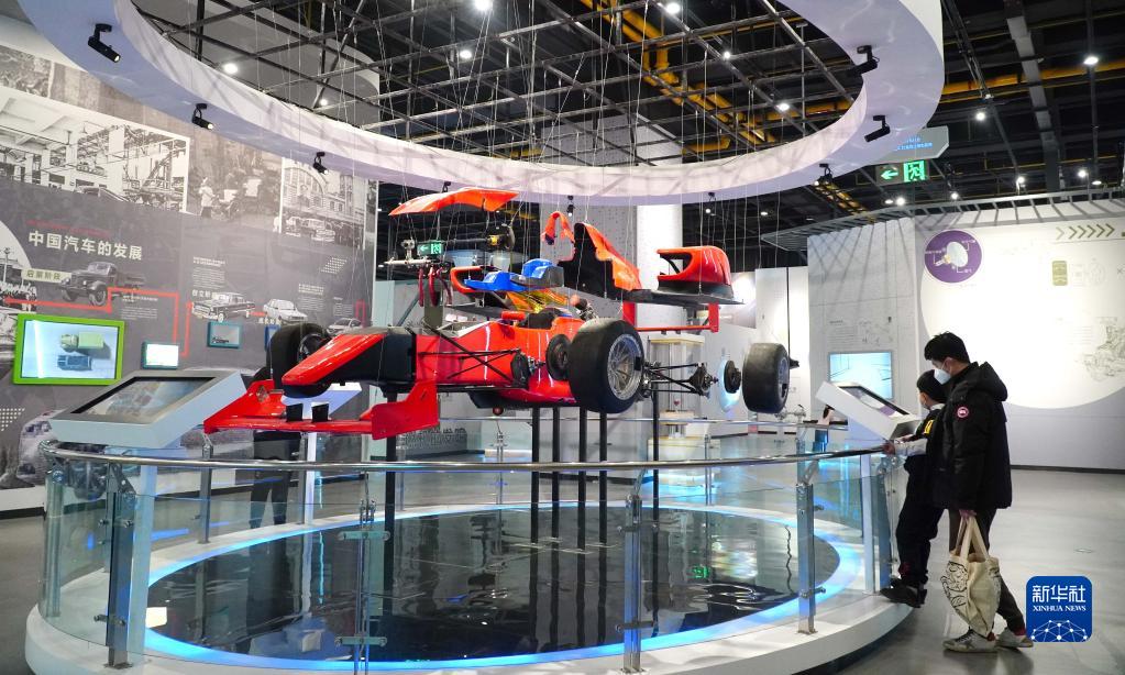 1月13日,在山東省科技館新館,參觀(guān)者在了解汽車(chē)結構有關(guān)的知識。