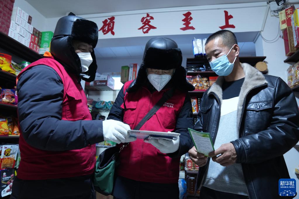 1月11日,國網(wǎng)撫遠市供電分公司抓吉供電所所長(cháng)白樺先(左)和工友費義偉(中)為商戶(hù)講解春節前用電注意事項。
