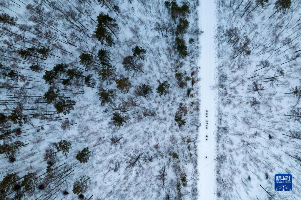 這是1月11日拍攝的森林撫育工人前往山林內的撫育作業(yè)點(diǎn)(無(wú)人機照片)。