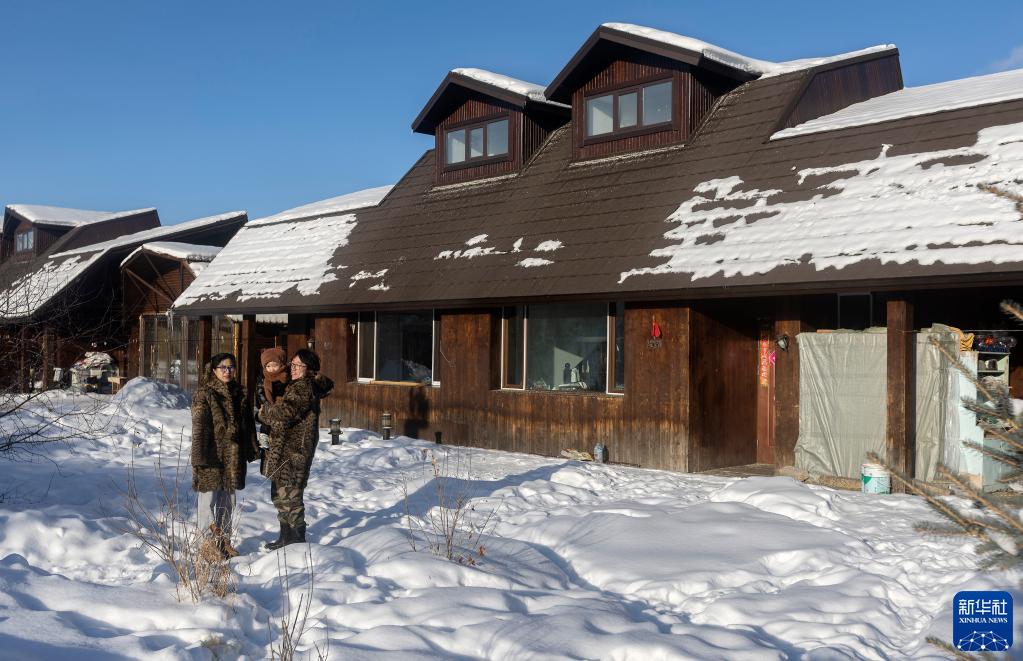 1月13日,覺(jué)樂(lè )一家三口在根河市敖魯古雅鄂溫克族鄉合影。2003年,從山上搬下來(lái)的使鹿部落都被安置在這里,兩戶(hù)一棟小樓,由政府免費提供給敖魯古雅鄂溫克人居住。新華社記者 費茂華 攝