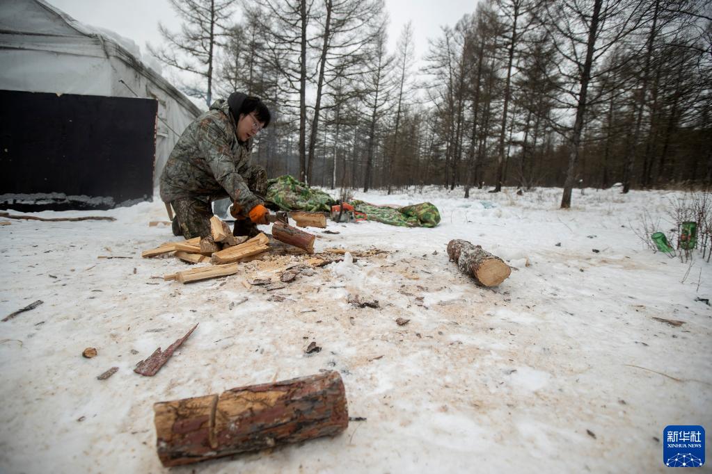 1月12日,覺(jué)樂(lè )在砍木頭,準備做飯。這些木頭來(lái)自于樹(shù)林里倒下或死掉的樹(shù)木。新華社記者 費茂華 攝