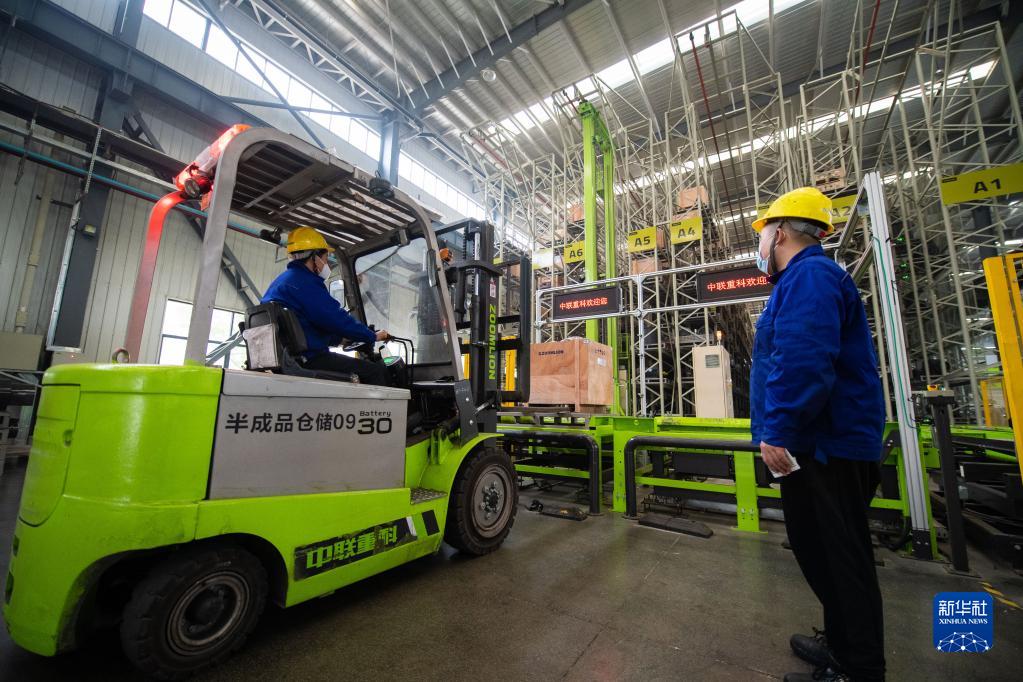 1月13日,在位于常德高新區的中聯(lián)重科建筑起重機械有限責任公司生產(chǎn)車(chē)間,工作人員把生產(chǎn)的產(chǎn)品零部件入庫。
