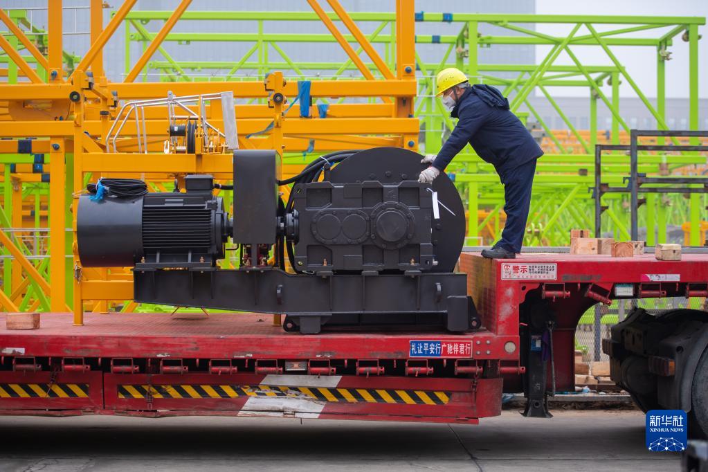 1月13日,在位于常德高新區的中聯(lián)重科建筑起重機械有限責任公司發(fā)車(chē)坪,工作人員在做產(chǎn)品發(fā)車(chē)前的準備工作。