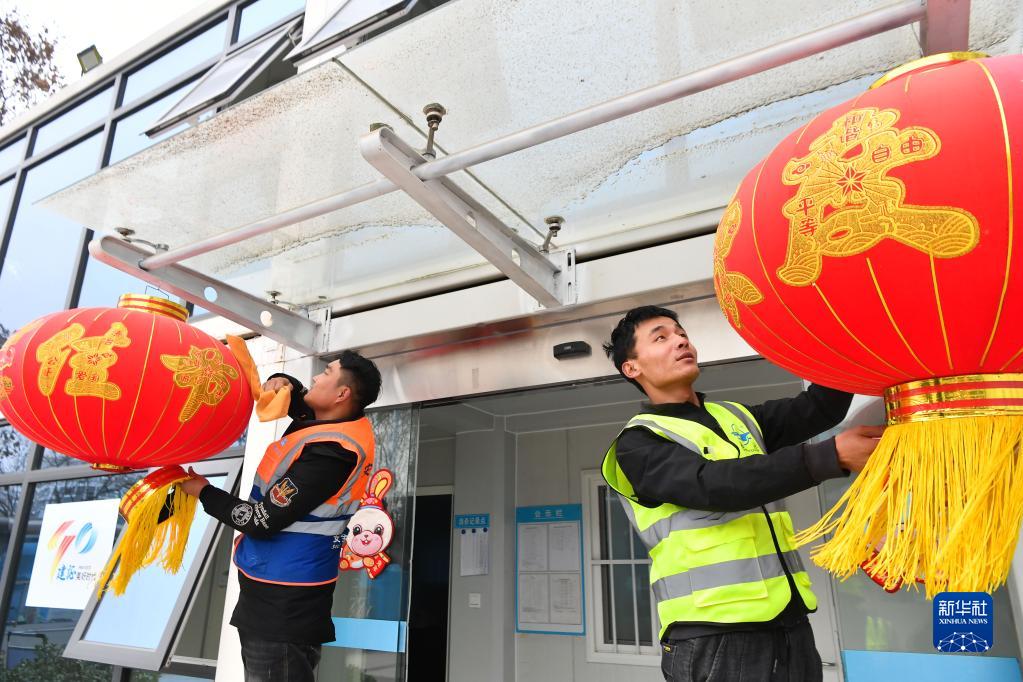農歷小年來(lái)臨之際,陜西省西安市的建筑工地節日氣氛濃厚。建設者們貼福字、掛燈籠、寫(xiě)春聯(lián)、包餃子,以多種形式迎接兔年春節的到來(lái)。