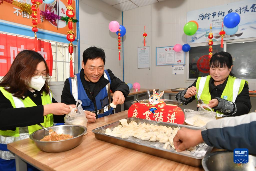 農歷小年來(lái)臨之際,陜西省西安市的建筑工地節日氣氛濃厚。建設者們貼福字、掛燈籠、寫(xiě)春聯(lián)、包餃子,以多種形式迎接兔年春節的到來(lái)。