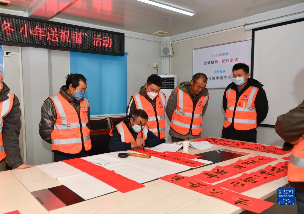 農歷小年來(lái)臨之際,陜西省西安市的建筑工地節日氣氛濃厚。建設者們貼福字、掛燈籠、寫(xiě)春聯(lián)、包餃子,以多種形式迎接兔年春節的到來(lái)。