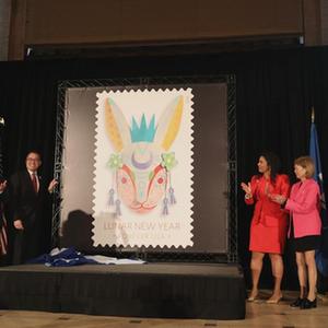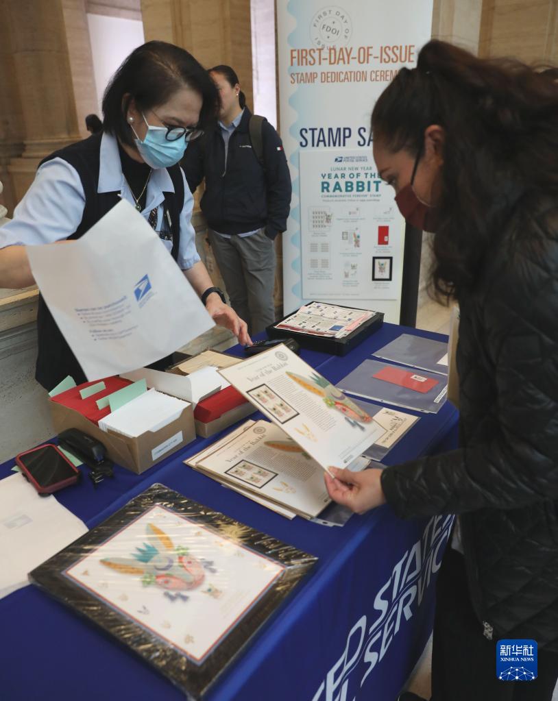 美國郵政總局12日在舊金山亞洲藝術(shù)博物館舉行中國農歷兔年生肖紀念郵票發(fā)行儀式,慶祝即將到來(lái)的中國農歷新年。