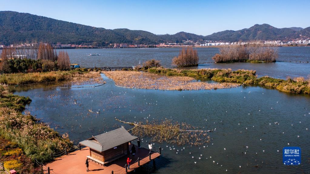 1月13日拍攝的昆明滇池一景(無(wú)人機照片)。