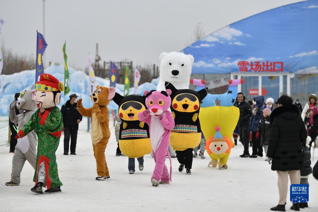 1月13日,演員在冰雪嘉年華現場(chǎng)與游客互動(dòng)。