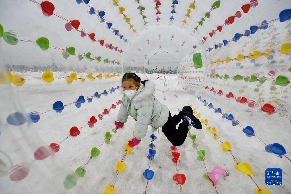 春節臨近,許多游客來(lái)到河北省唐山市豐潤區西那母莊三村舉辦的冰雪嘉年華,盡情享受冬季戶(hù)外冰雪游藝的樂(lè )趣。新華社記者 牟宇 攝